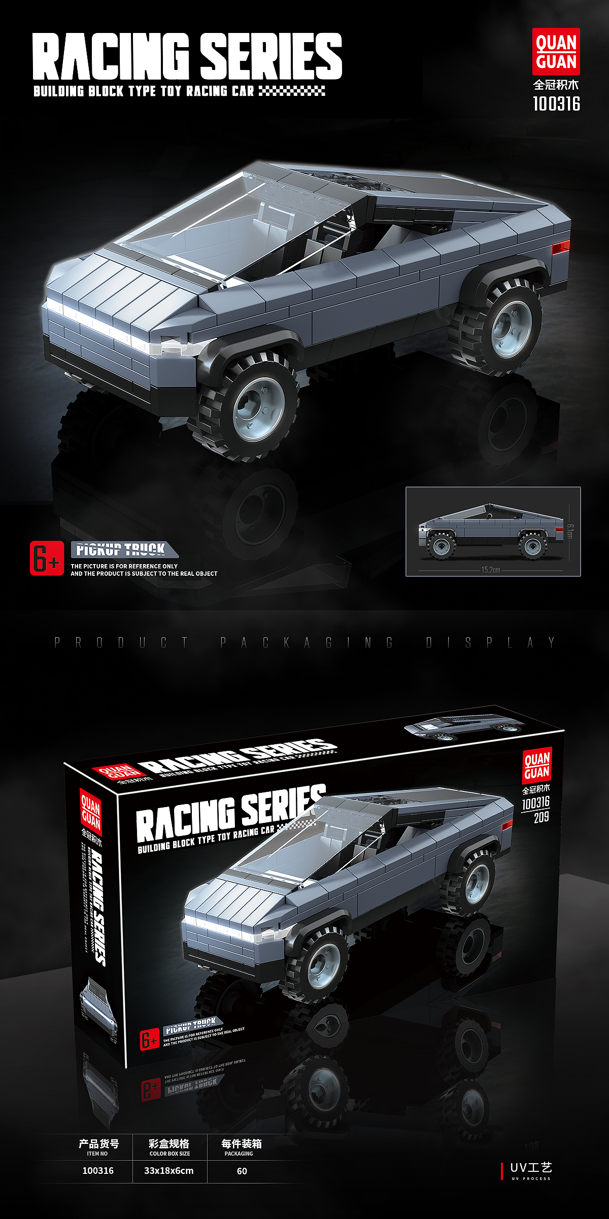 Dieses Bauset Tesla Cybertruck ist Teil der militärischen QuanGuan-Kollektion und enthält 209 hochwertige Teile für ein authentisches Bauerlebnis. Perfekt für Sammler und Militär-Enthusiasten.