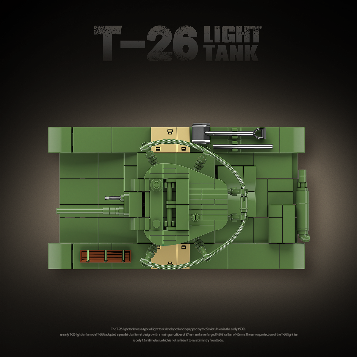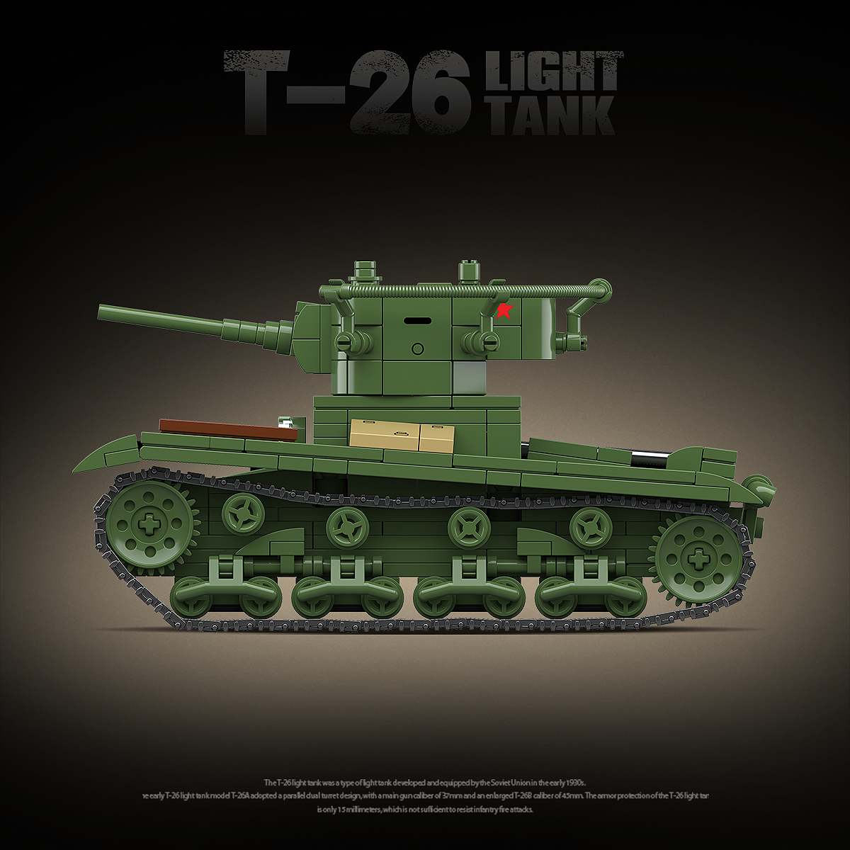 The T-26 was based on the British Vickers 6-ton tank and became the backbone of Soviet armored forces in the 1930s. It saw extensive combat in the Spanish Civil War and early WWII.