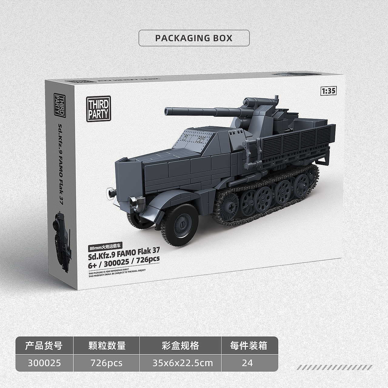 This SD.KFZ.9 Famo Flak 37 building set is part of QuanGuan's military collection, featuring 726 high-quality pieces for an authentic building experience. Perfect for collectors and military enthusiasts alike.